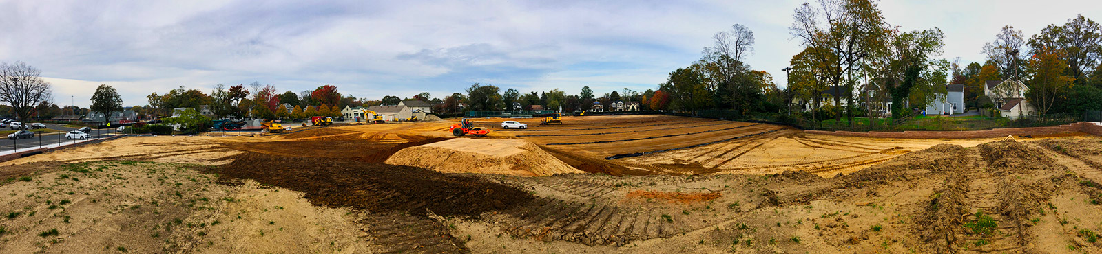 Over the next few weeks, installation of the retaining walls, drainage system, and leveling the field areas will occur.